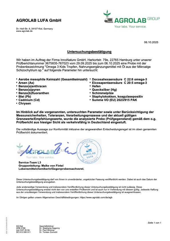 Die InnoNature Omega 3 Tropfen Kids ermöglichen eine einfache Zufuhr der wertvollen Omega-3-Fettsäuren, optimal angepasst an die Bedürfnisse Deines Kindes. Unsere Omega 3 Tropfen sind natürlich, vegan und enthalten einen hoch bioverfügbaren, natürlichen Anteil an DHA.