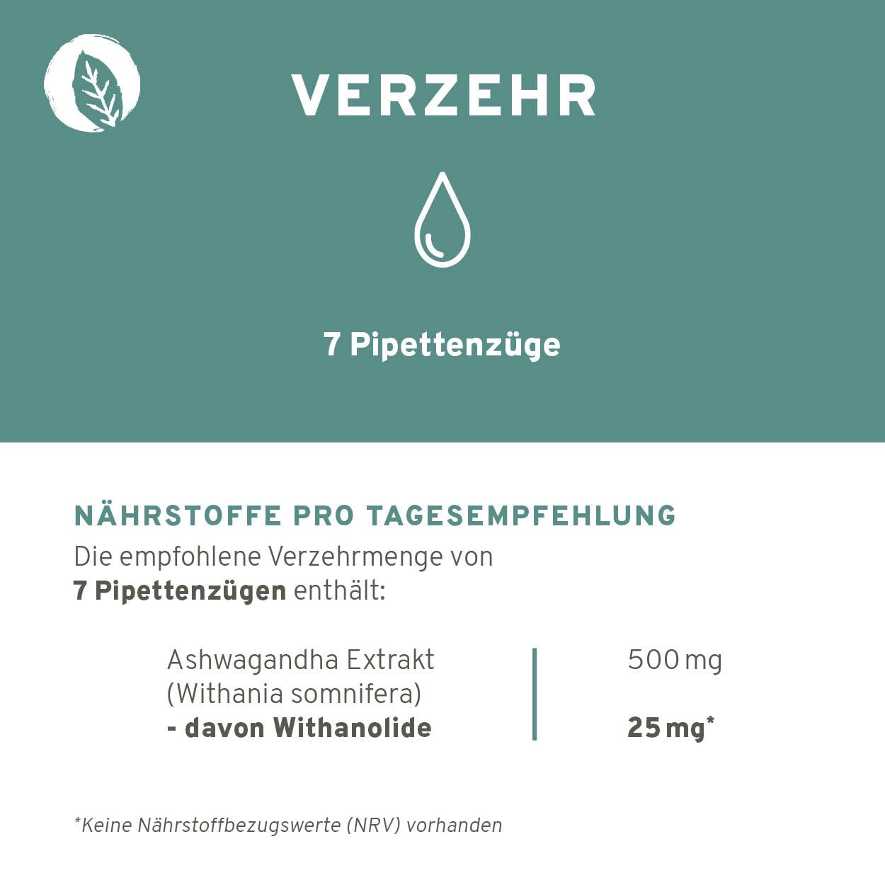 Verzehrempfehlung: Täglich 7 Pipettenzüge gelöst in etwas Flüssigkeit (z. B. Wasser) verzehren. Vor jedem Gebrauch gut schütteln, da sich das Extrakt absetzt.