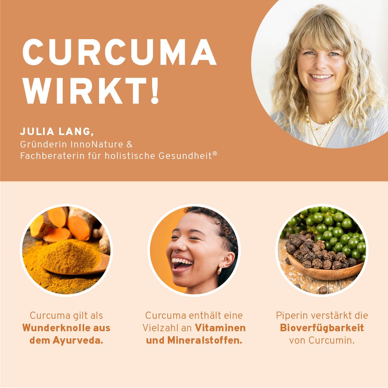 INHALT Was ist Kurkuma?Wie wirkt Kurkuma?Kurkuma ist nicht gleich KurkumaIdeale Kombination: Kurkuma mit PiperinUnsere liebsten Rezepte mit KurkumaKurkuma in allen VariantenInnoNature Bio Curcuma WAS IST KURKUMA? Kurkuma (Curcuma longa) ist...