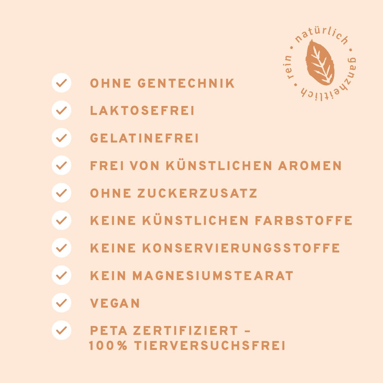 💛 NATÜRLICH, GANZHEITLICH, REIN: Frei von überflüssigen Zusatzstoffen und Zutaten. Ohne künstliche Konservierer, laktosefrei, ohne Zuckerzusätze, keine künstlichen Farbstoffe, ohne Zusatz von Aromen, kein Magnesiumstearat, ohne Gentechnik.