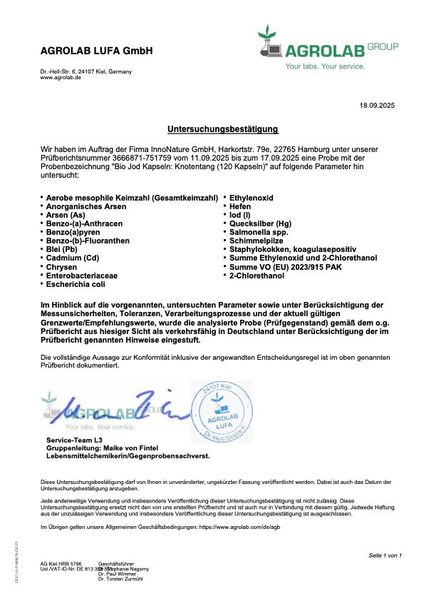Die Jod Kapseln von InnoNature haben eine ganzheitliche Wirkung für das Wohlbefinden und decken den täglichen Bedarf optimal ab. Knotentang ist eine Braunalge und somit ein natürlicher Rohstoff, welcher hervorragend vom Körper aufgenommen werden kann. Braunalge ist reich an Jod und ist somit eine wunderbare natürliche und vegane Quelle.