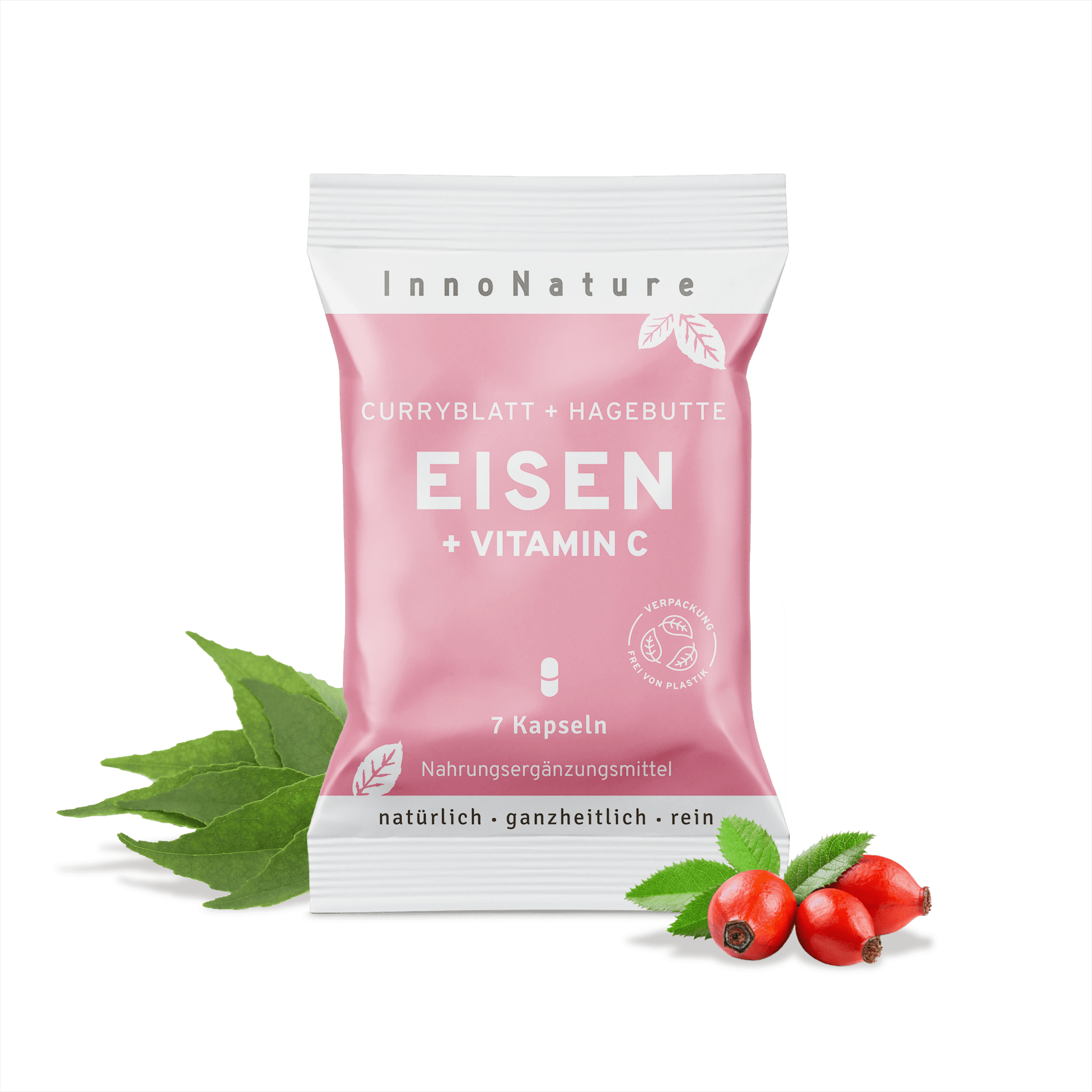 Der Wochenvorrat Eisen + Vitamin C von InnoNature besteht aus 7 Kapseln.
