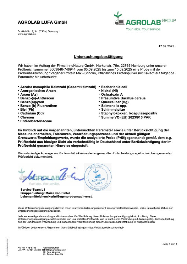 Hergestellt für InnoNature GmbH, Harkortstr. 79e, 22765 Hamburg.