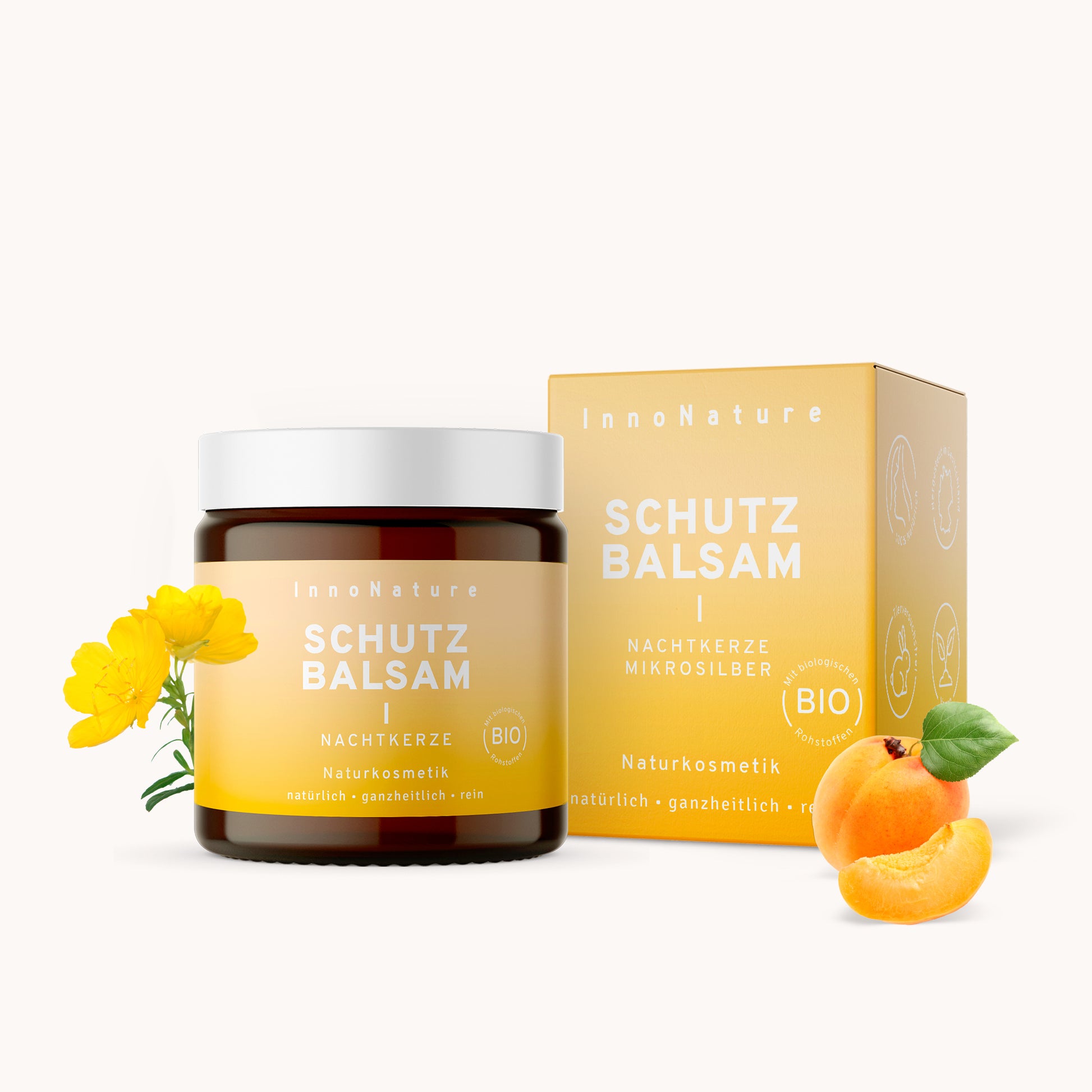 Unser Schutzbalsam eignet sich für sehr trockene, empfindliche und zu Rötungen neigende Haut. Nachtkerzenöl, Mikrosilber und Bisabolol können bei empfindlicher oder gereizter Haut beruhigend und lindernd wirken. Sheabutter, Beerenwachs und Jojobaöl verschmelzen zu einer reichhaltigen Textur und versorgen Deine Haut mit nährenden Ölen.